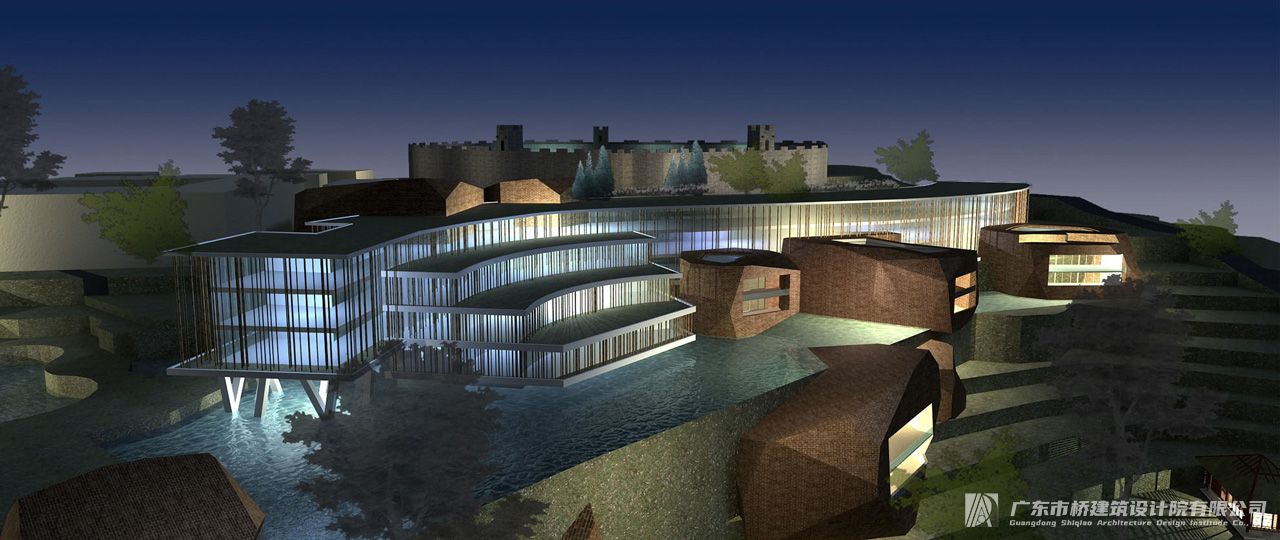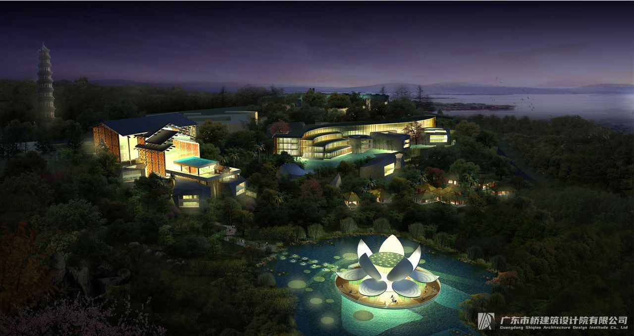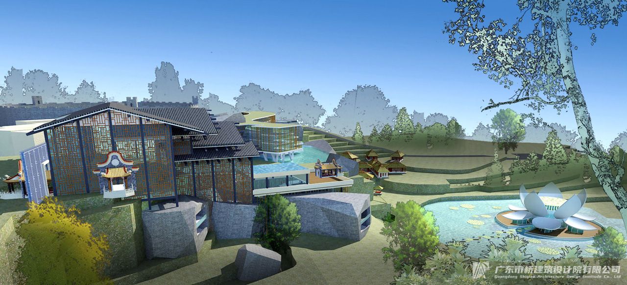 该项目位于莲花山顶,东面远眺珠江入海口狮子洋,近望观音圣境,西面背负莲花塔、清兵营,南北两侧环附于自然山体。项目以度假客房、中小型会议接待、瑜伽SPA、特色餐饮为主要服务内容。塑造莲花山景区的景观建筑:用地规模17000平方米、建筑面积19000平方米